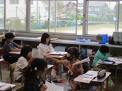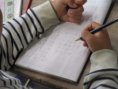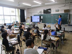 8×3の考え方は8+8+8のように、1組ではかけ算をたし算に置き換えて、かけ算の意味を考えながら学習を進めていました。2組では、2の段の九九の唱え方を覚えていました。「にいちが2、ににんが4・・・」のように、読み方を確かめながらノートに書いていきました。2×8は「には16」と考えましたが、読みは「にはち16」です。これまでの時間に5×8=40(ごは40)を習っていたので、同じ考え方で予想したんですね。これまでの学びを使って予想する、いい考え方でした。