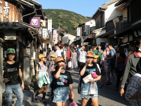 朝は7時過ぎといつもよりも早い登校でしたが、元気に集合し、出発式を行い、バスに乗り出発しました。1日目は、法隆寺、東大寺(奈良公園)、清水寺を見学しました。見学先ではバスガイドさんからの説明を聞き、自分の目で見て感じたことと合わせてしおりに一生懸命にメモをとっていました。宿泊地に到着後、各部屋での豪華な夕食を食べた後、友禅染体験を行いました。扇子の絵柄を友禅染で描いていく体験でしたが、作業を始めると自分の感性にまかせて、どんどん描いていき、すばらしい作品ができあがっていきました。後日完成した扇子が子どもたちの手元に届くそうです。楽しみですね。