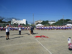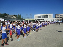 小学校だけで行う、小中合同運動会の総練習でした。今日の練習の主役は・・・委員会の子たちです。各学年で、入場、演技・競技、退場は行っていますが、委員会(と先生たち!)の練習は行う機会がありません。そこで、全校で運動会当日の流れを確認しつつ、委員会の練習も行ったのです。