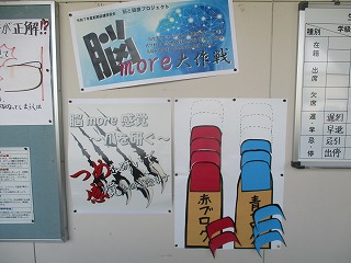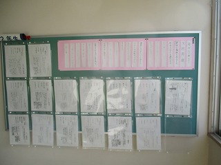 八開中学校の校長室の廊下には、俳句が飾られています。