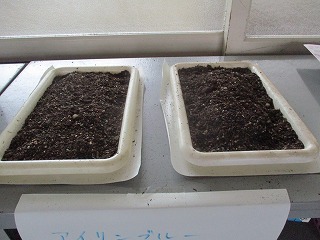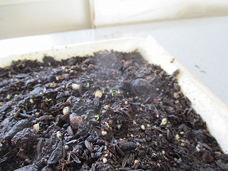 2週間ほど前に種を蒔いたアイリンブルーから小さな小さな芽が出ました!