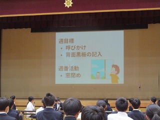 また、八開中の朝礼では、順番に先生が話をしていきます。