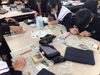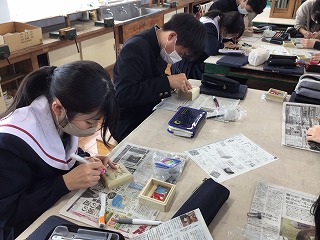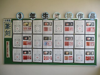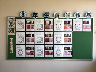 3年生の美術では、篆刻「世界に一つだけのマイ印鑑」づくりが終わり、