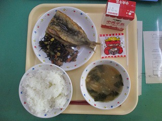 イワシのかば焼きはカリッと揚げられていて、甘辛いたれが白いご飯を進めてくれます。今日も美味しい給食を作ってくださり、感謝です。