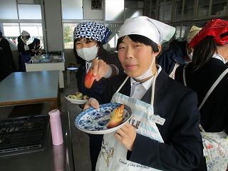2年生の調理実習の一環で、りんごの皮むきが行われました。