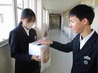 八開中学校では、11日・12日が赤い羽根募金の募金期間になります。