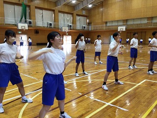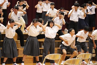 今年度は2組で、「扇子の舞」と「筋肉革命」が行われました。
