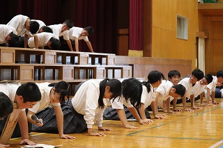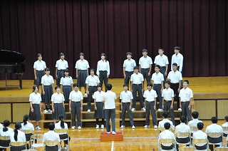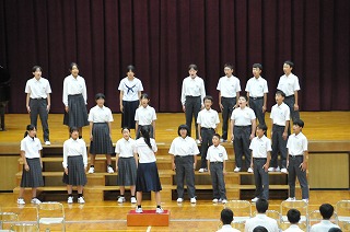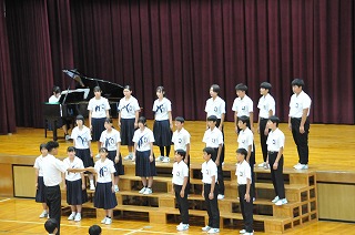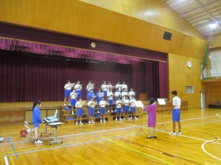 各学年、初めて他学年の前で歌い、緊張した様子でした。