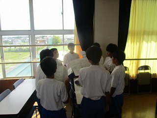 体育祭を一緒に闘ったブロックの人たちに、よかったところや感謝を話しました。