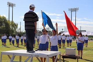 今年度から、短距離走の前には世界陸上のようにアナウンス及びポージングを取りました。