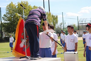 雲一つない秋晴れの下、令和7年度八開中学校体育祭が行われました。