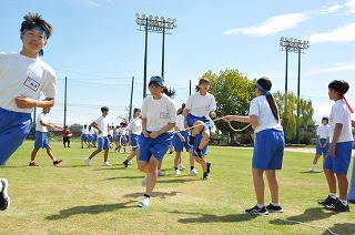 この種目は学年ごとで、3分間の8の字跳びの合計を競いました。