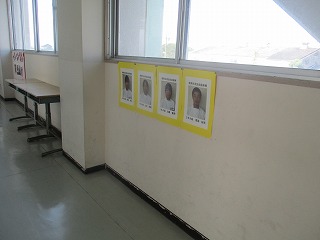 八開中学校の校長室の廊下には、俳句が飾られています。