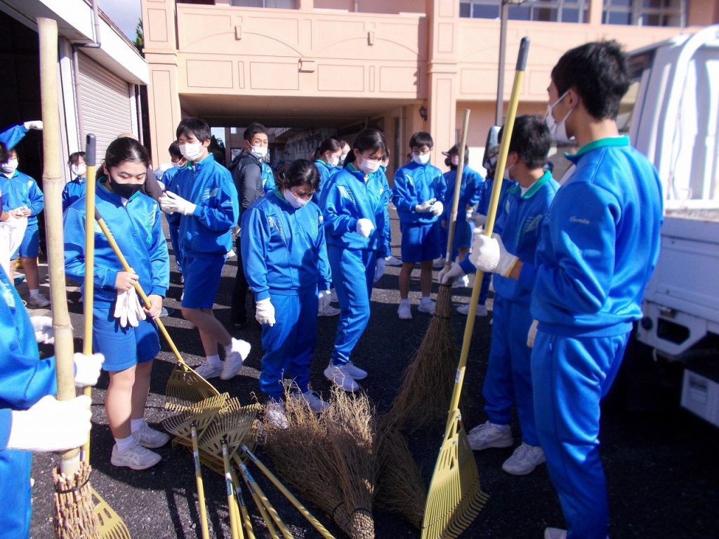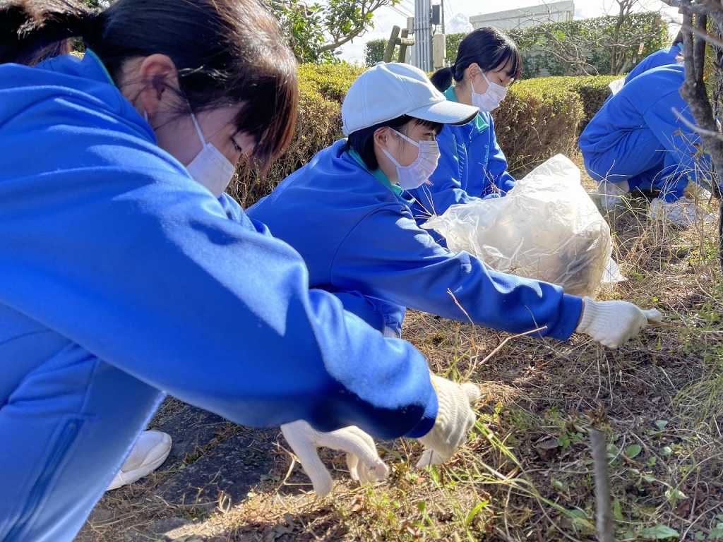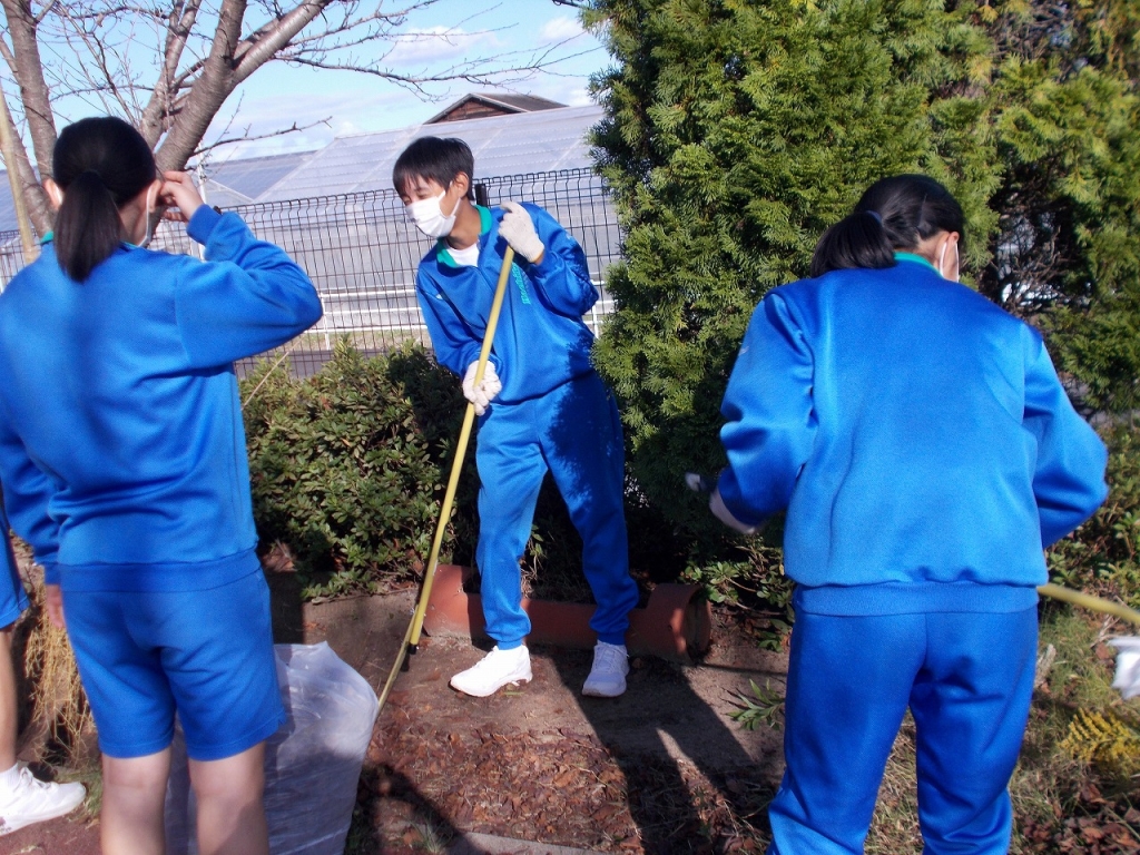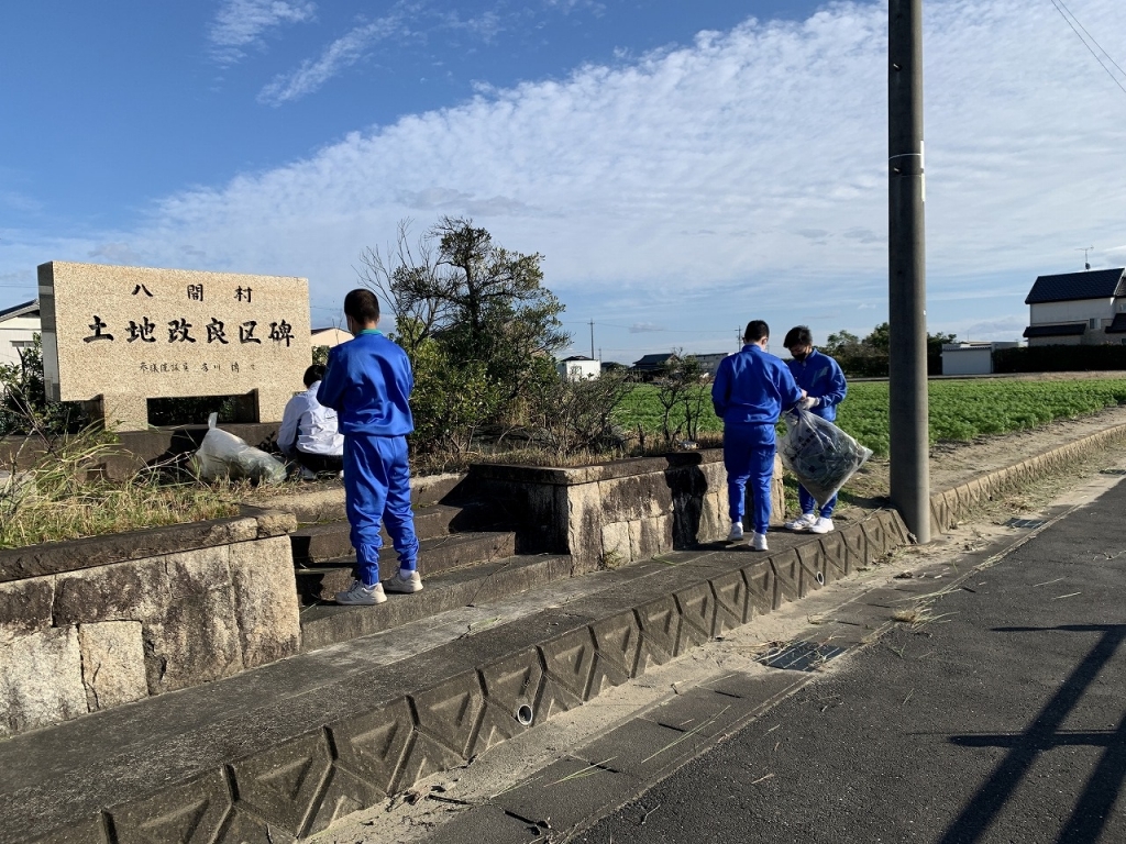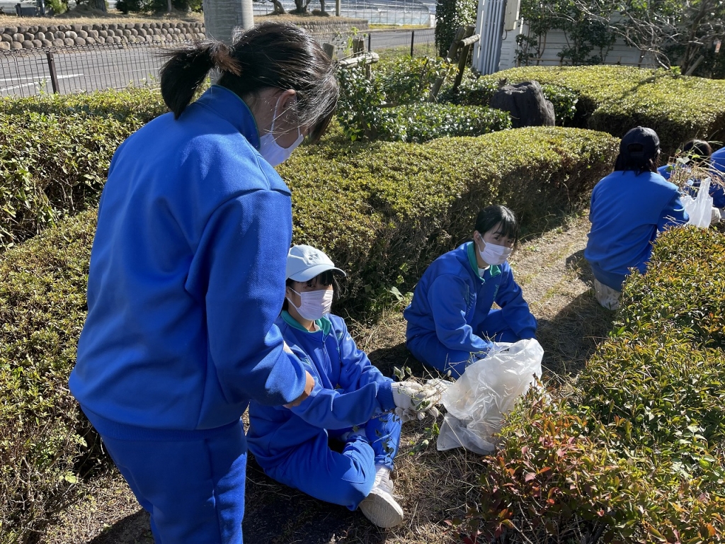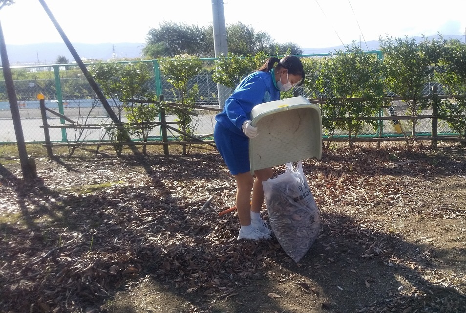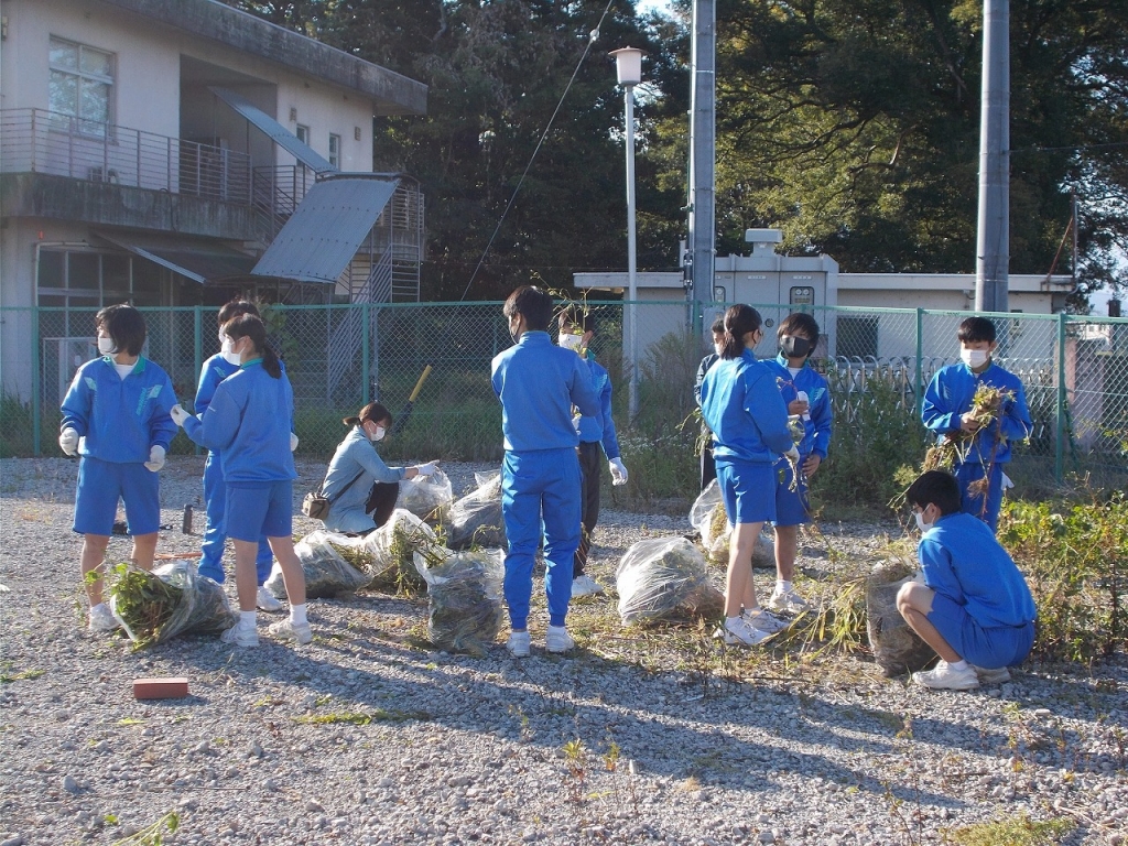 福祉センター横の駐車場では、福祉センターの方と一緒に、大人数で草を折りながら袋に詰め、最後にはやり終えた満足感でいっぱいでした。この活動を通じて、八開の地を愛すること、奉仕活動は他人のためだけでなく自分の成長の糧になるということ、やり終えた充実感を味わえたことなど、たくさん感じたことと思います。
