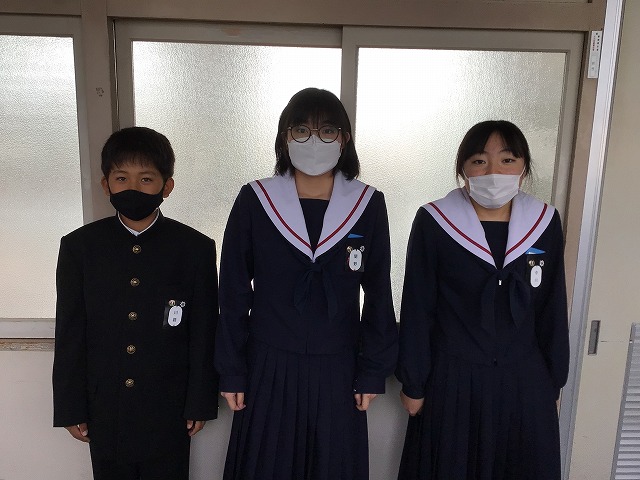 朝礼はZoomで行い、学年代表の生徒3人がスピーチを行いました。