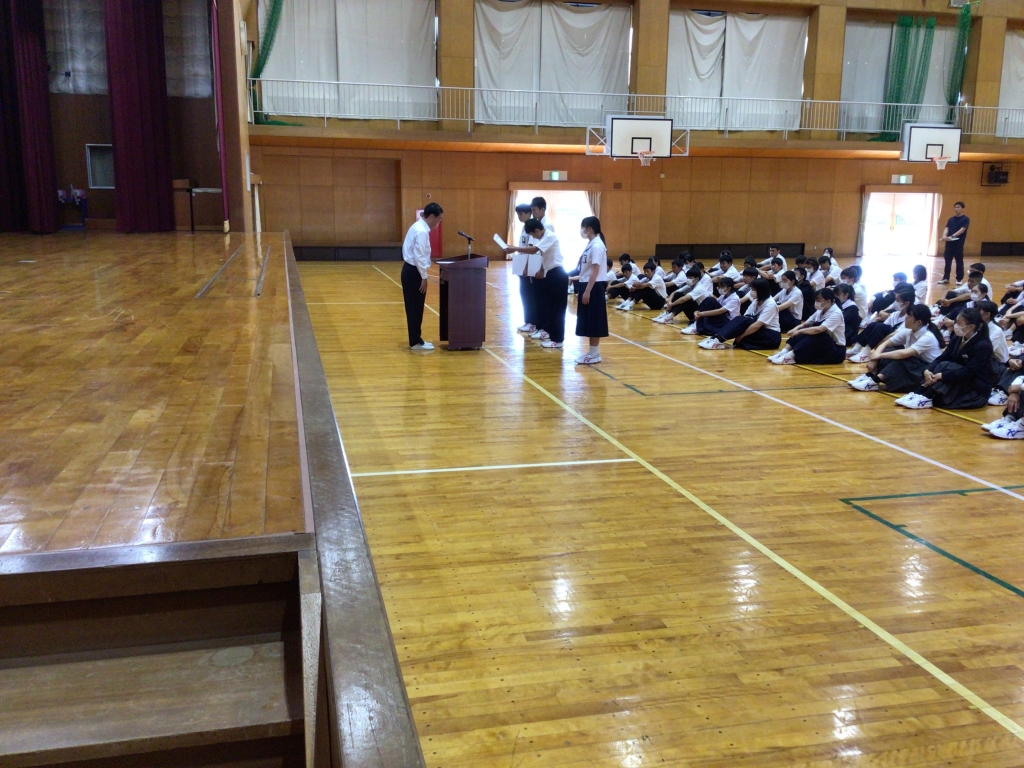 校長先生からは、「校外でこそ皆さんの真の力が試される」。だから、八開中生として誇れる行動を心がけるようお話がありました。