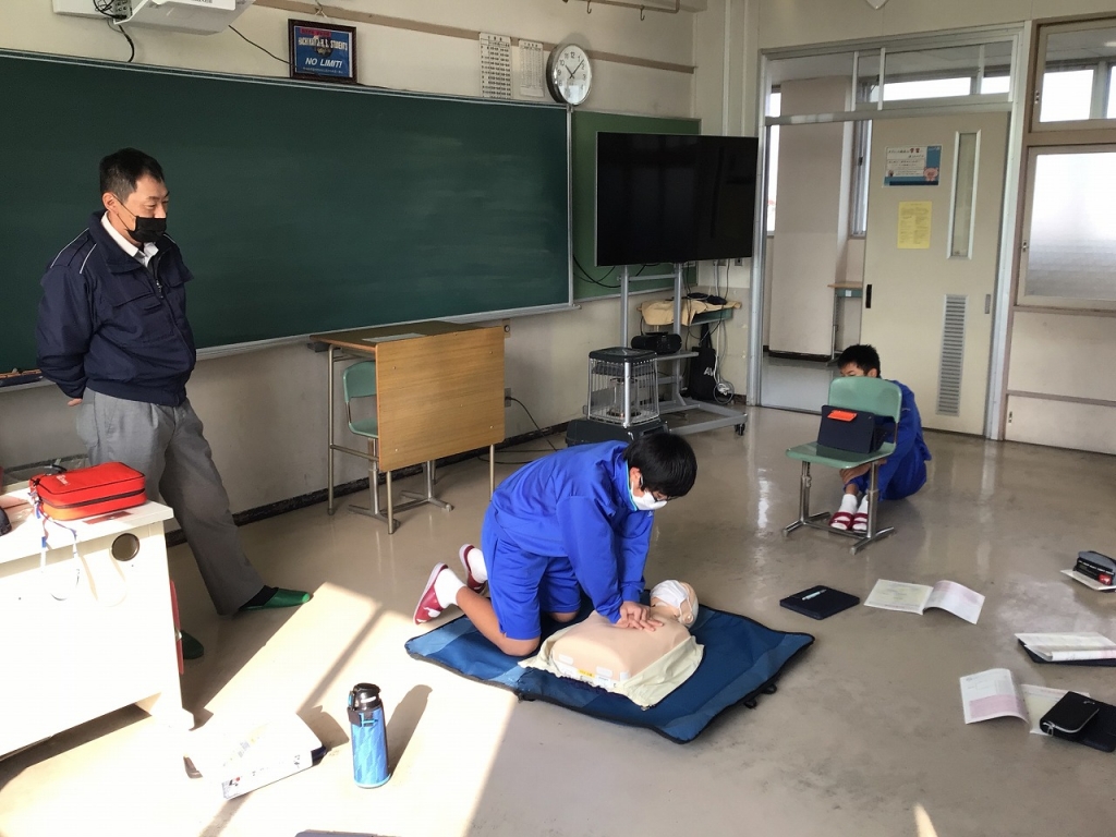 愛西市消防署の方に来校していただき、2年生が救急法講習会を行いました。