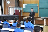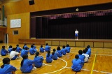はじめに、中学校生活についての話を聴きました。校長先生からは3つのことについての話がありました。一つ目は、家族のグループ・友達のグループ・仕事のグループの3つのグループの話で、仕事のグループの中では気の合わない子、苦手な子と一緒になっても1つのことをやり遂げていかなければいけない。中学校生活の中でも、同じ目的に向かって認め合いながら1つのことをやりとげていくようにしてほしいという話でした。二つ目は、中学生は社会の中では大人料金となり、子どもとして見られなくなることで責任のとり方が変わってくるという話でした。三つ目は、壺に石を入れていっぱいだと思っても、まだ砂を入れることができる。砂でいっぱいだと思っても、さらに水を入れることができる。大きな口を開いた壺(=素直な心)をもって、話を聴くようにしてほしいという話でした。