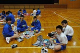 昼食は、体育館で校外学習の班ごとでお弁当を食べました。小学校がちがうクラスメイトのことを知ろうと、積極的に話しかける生徒がいて、お互いの距離が少し近づいた時間になったと思います。
