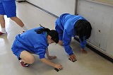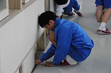 清掃活動では、扉のレールなどの細かいところまで磨く生徒や、はじめての掃除場所でやり方が分からない子に教える生徒など、コミュニケーションをとりながら、一人一人が一生懸命に取り組むようすが見られました。