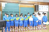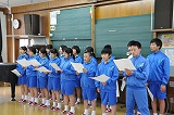 校歌の練習では、はじめの発声からよく声が出ており、やる気が伝わってきました。そして、クラスごとに練習をして発表しました。音楽の授業と合わせて2回目の練習にもかかわらず、それぞれのクラスが堂々と発表することができました。最後に全員でもう一度歌うときには、楽譜を見ずに歌うことができました。