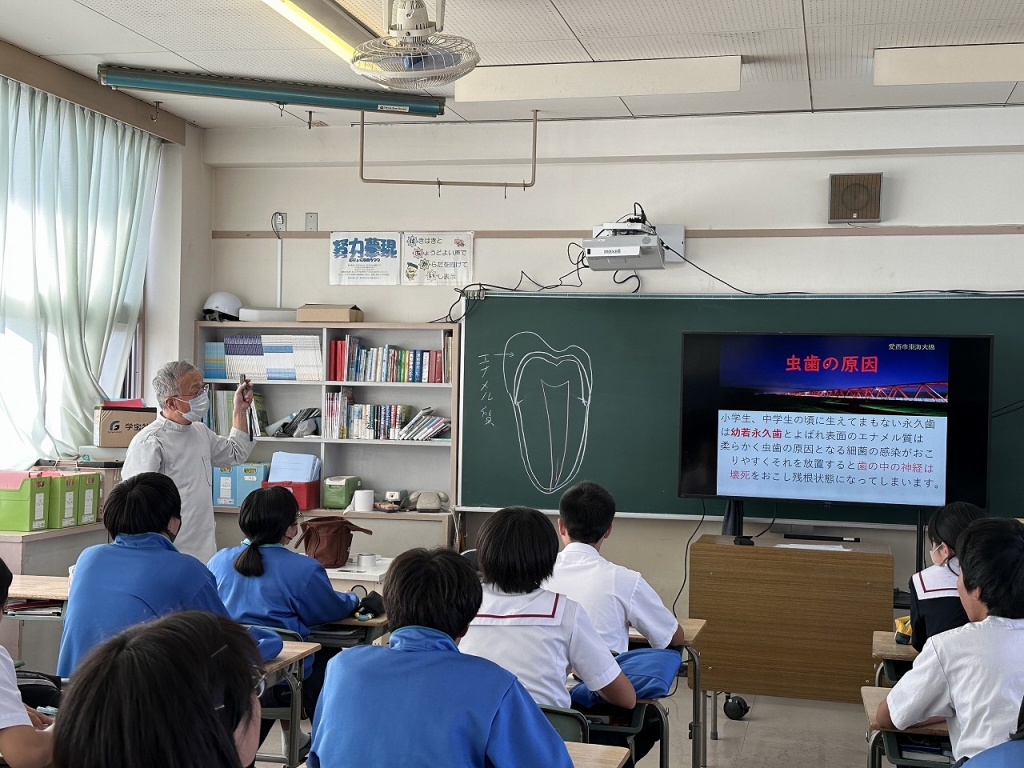 学校歯科医の杉先生に来校していただき、3年生が歯と口腔の健康について学びました。