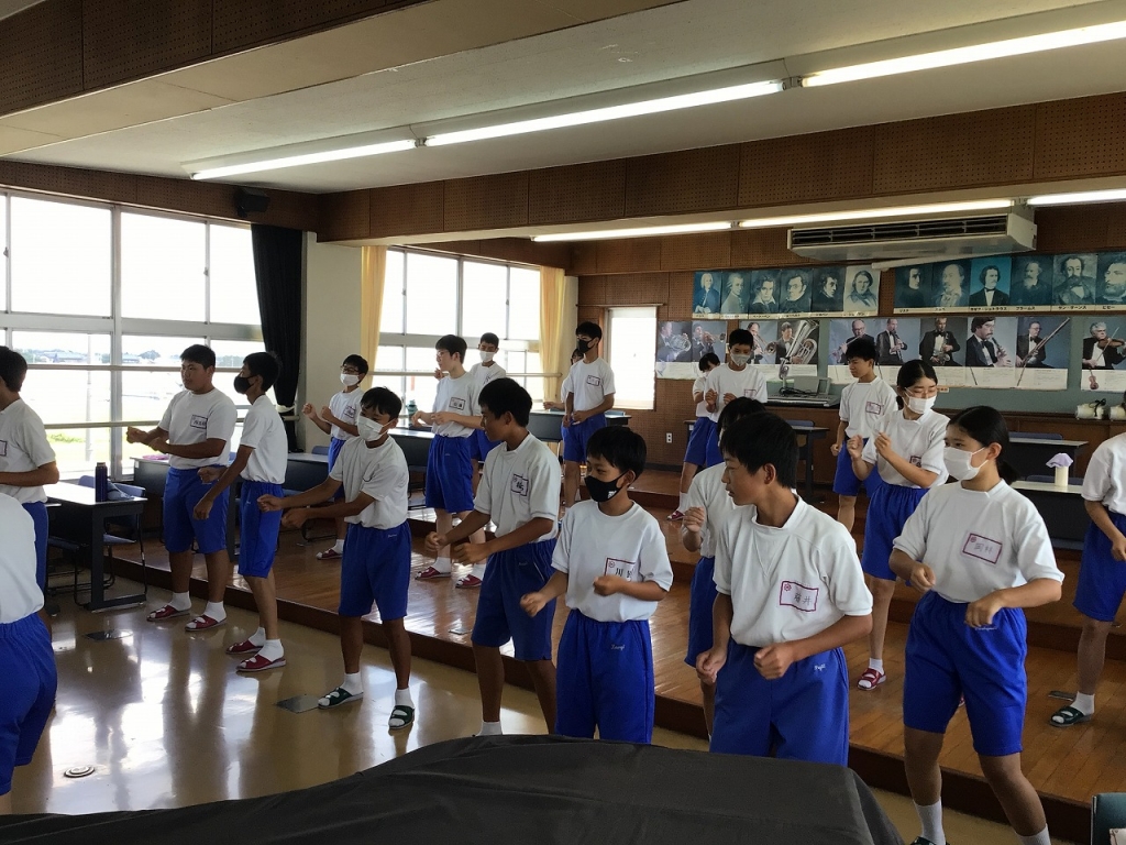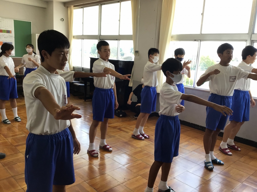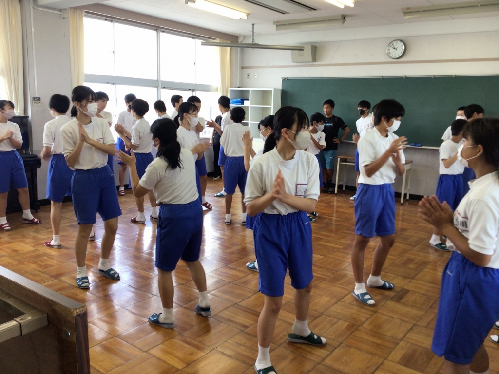 また、9月の体育祭に向けて、ブロックに分かれて蓮舞の練習をしました。