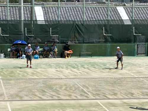 中総体ソフトテニス県大会が一宮市テニス場で開催されました。本日の団体戦に男子ソフトテニス部が出場。安城北中と対戦、1-2で惜しくも敗れました。どのペアも暑さに負けず一生懸命に試合に臨み、よく頑張りました。明日の個人戦も頑張ってください。