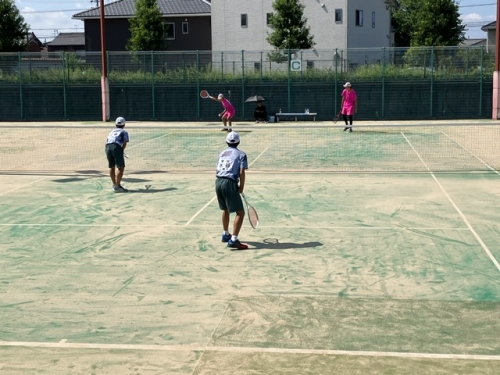 男子ソフトテニス個人戦、本日の1試合目は対美和中4-1で勝利し