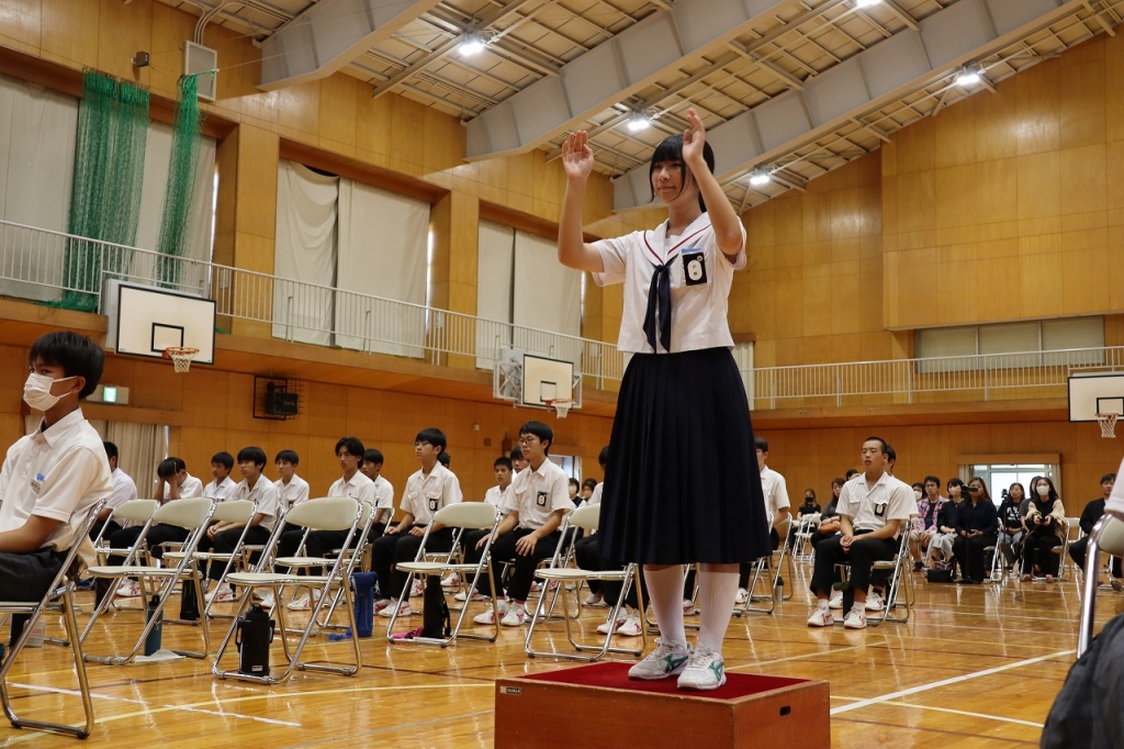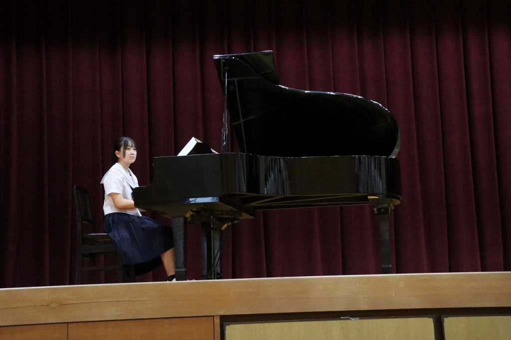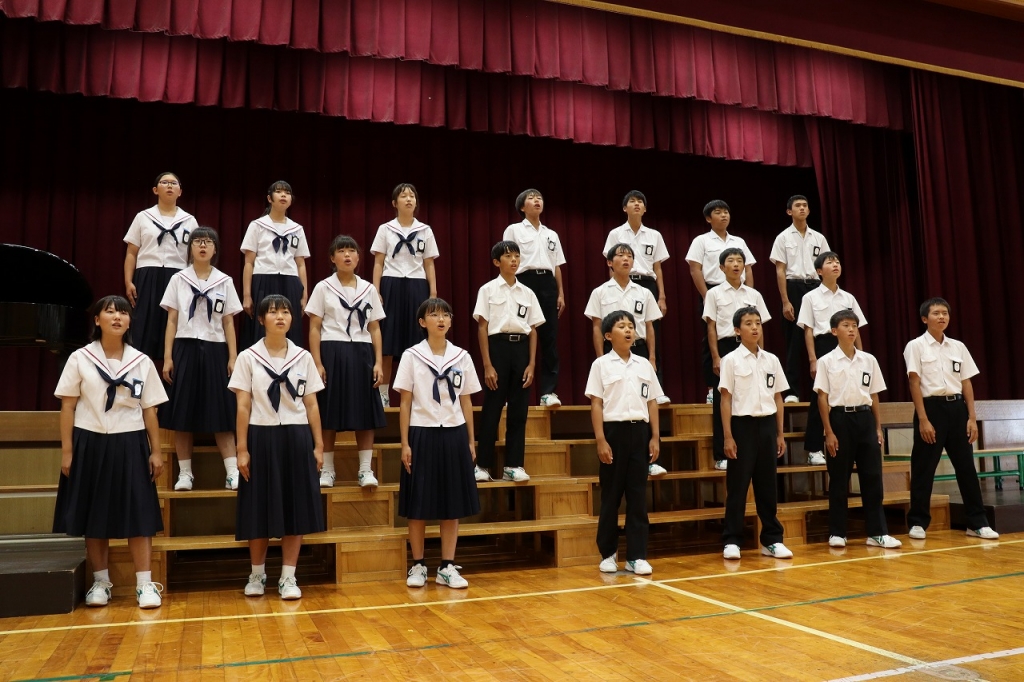 2年生全員の気持ちが揃った合唱でした。皆が知っている曲で、聴いている人の心を和ませました。美しいハーモニーが体育館に響きました。