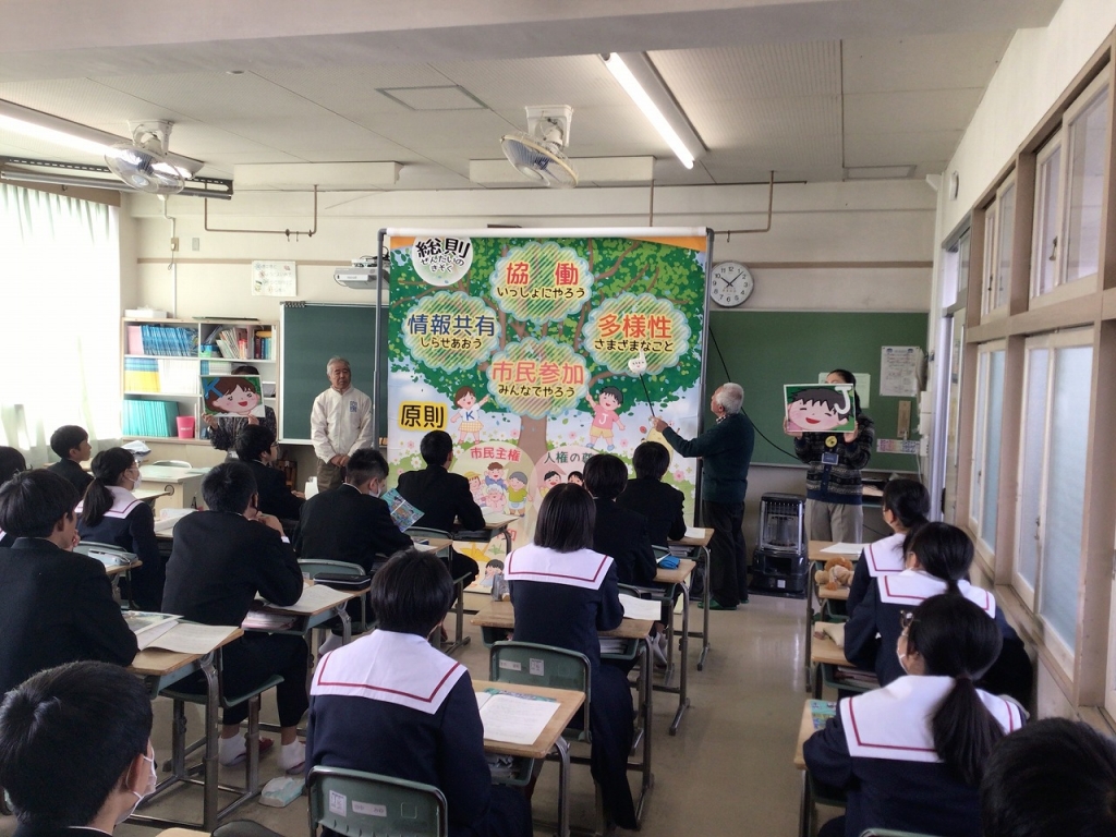 2年生を対象に、自治基本条例とは「どういうものなのか」「どう生かしていくのか」についての講話を聞きました。