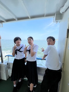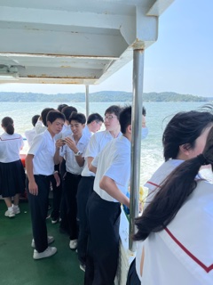 汽船に乗り、「ああ松島や」を楽しんでいます