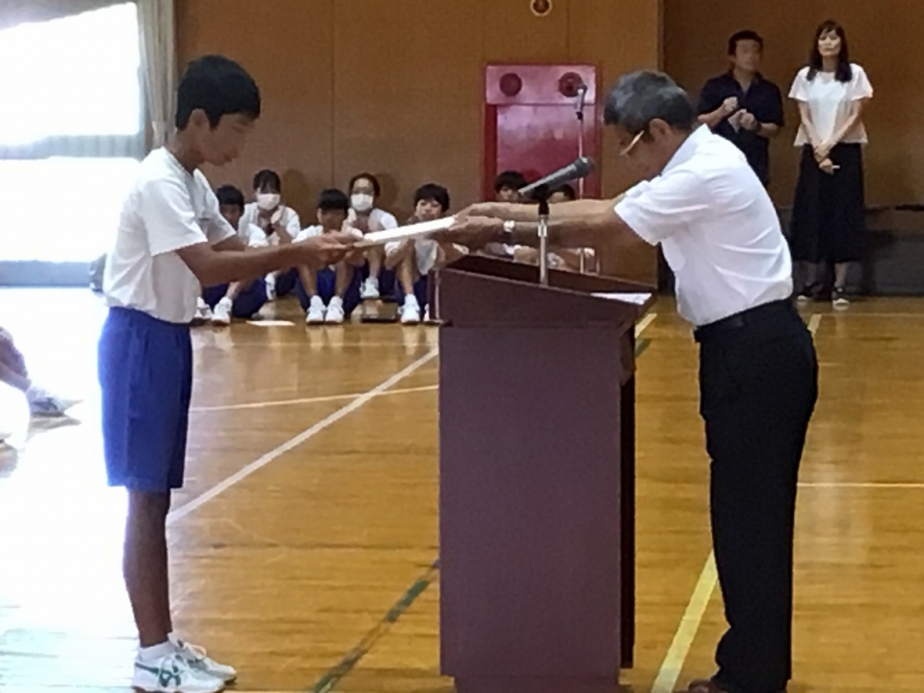 今日の朝礼では、夏休みの課題であった読書感想文の表彰を行いました。