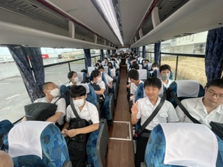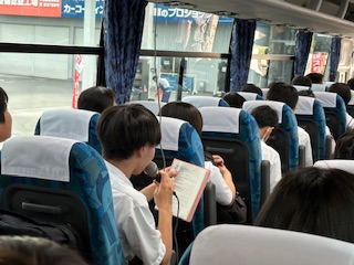バスの中で「出発式」です。