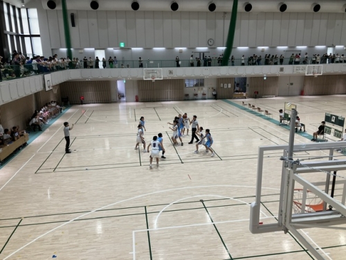 女子バスケットボールは第2クォーターが終了し、対甚目寺中25-24でリードしています。後半も頑張って。