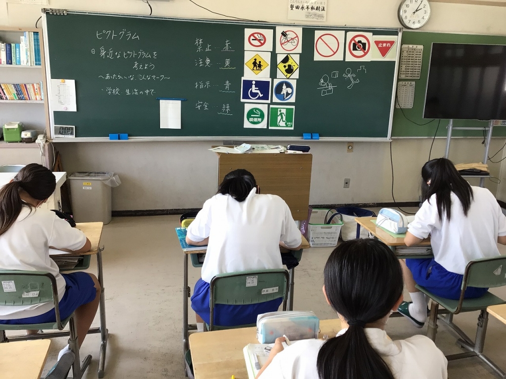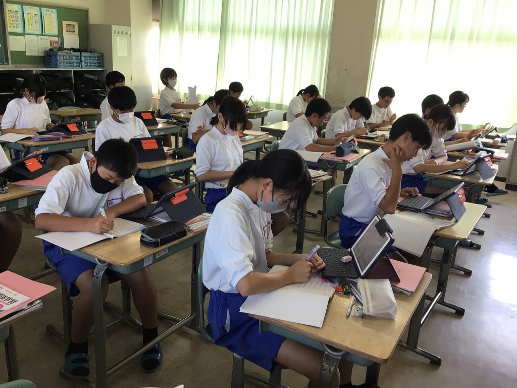 1年生はICT機器を活用し、授業に取り組んでいました。
