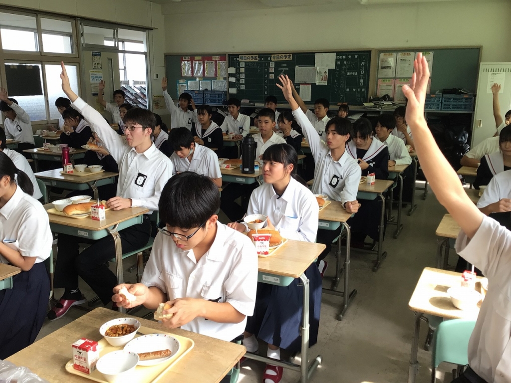 テストが終わり、ほっとしながら給食です。