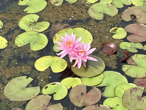 八開中の中庭の池にきれいな睡蓮の花が咲いています。愛西市が誇る蓮の花とは花びらの形が異なりますが、親しみを感じますね。