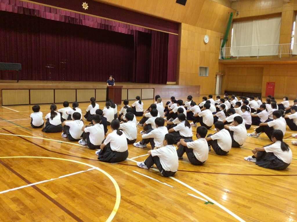 3年生が修学旅行で見学した「中尊寺金色堂」、先生が体験した「富士山登頂」などの話題を盛り込んで話してくださいました。