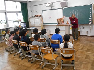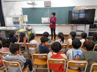 今日は1~3年生の読み聞かせの日でした。朗読グループ「松ぼっくり」の方が、子どもたちのために、いつも素敵な本を選んで来てくださり、読み聞かせをしてくださいます。子どもたちは絵本に夢中になって聞き入っていました。