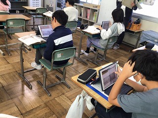 本校では今年度より、「主体的、対話的で深い学び」ができる児童の育成に向けて、先生方の授業力を高めるための研究をしています。今日は6年生の国語の教材「鳥獣戯画を読む」で、自分の考えを相手に伝えたり、相手の意見を聞いて、どう思ったのかを伝えたりしながら授業をすすめました。タブレットで仲間の意見を共有できるところは、最近の教育のよいところです。子どもたちの深い学びに向けて、研究を進めていきたいと思います。