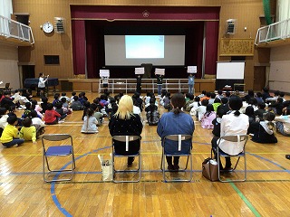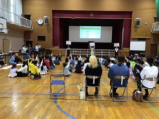 5時間目に全校児童とPTA保健厚生委員会の方にも参加していただき、体育館で「学校保健委員会」を開催しました。保健委員の児童による発表やクイズ、愛西市保健センターの歯科衛生士さんからのメッセージもあり、「かむこと」の大切さについて学びました。