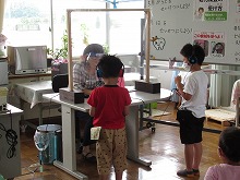 検査の仕方の説明を聞いた後、ヘッドホンをつけて検査をしました。みんな静かに順番を待つことができ、スムーズに検査が進みました。