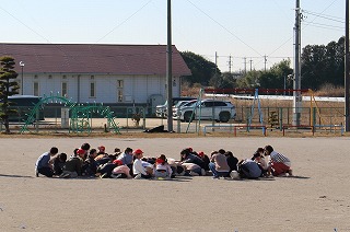 1月24日(火)子ども達には予告なしで、放課時の避難訓練を行いました。運動場にいた児童は中央に姿勢を低くして中央に集まりました。教室にいた児童は、机の下に避難した後、近くにいた先生や放送の指示で運動場に避難しました。高学年児童が「頭を守るんだよ」「頭をかくして」など低学年児童に声をかけているのに感心しました。