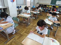 1年生は、国語の時間に「おおきなかぶ」の学習をしています。はじめにみんなで登場人物を確認したあと、各々が教科書で確認しながら①おじいさん→②おばあさん→③まご・・・と登場した順番をノートに書きました。また、段落分けも行い、小学生らしい学習内容になってきています。ノートの文字も、形を整えて丁寧に書ける子がだんだん増えてきました。