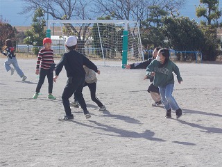 時折吹く風は冷たいものの暖かな日差しが降り注ぐ中、チャイムが鳴るとたくさんの八輪っ子が、運動場に元気よくとび出してきました。最近、学年混合で、あるいは学年でまとまってドッジボールする姿をよく見かけます。友達と縄跳びやおにごっこする子達もいます。ぶらんこは相変わらず大人気で、多くの児童が順番をまって遊んでいました。