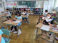 4年生は理科で、「電流のはたらき」を勉強しています。今日は、乾電池の数を1個から2個に増やしたりつなぎ方を変えたりして、豆電球の明るさを比べました。「直列つなぎ」や「並列つなぎ」という言葉を覚えながら、一人一人が実験をし、電流の働きを学びます。豆電球の明るさの違いに声があがり、楽しく学習を進める姿が見られました。