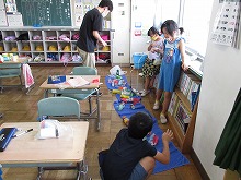 うちわであおいで動かす車や、マグネットを利用した魚釣りなど、とても楽しそうなおもちゃばかりです。作って、実際に遊んで、改良して、また遊んでみて、もうすぐ完成です。