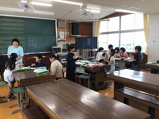 3年生は、音楽で、4拍子のリズム作りをしていました。子どもたちが選んだ楽器で、グループで順番に演奏したり、合わせて演奏したり、いろいろなリズムを試しながら、楽しく活動していました。