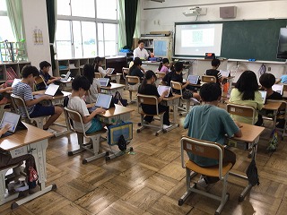 4年生は、タブレットで「Googleフォーム」の学習をしていました。フォームを使ってクイズを作成しながら、操作に慣れることができました。